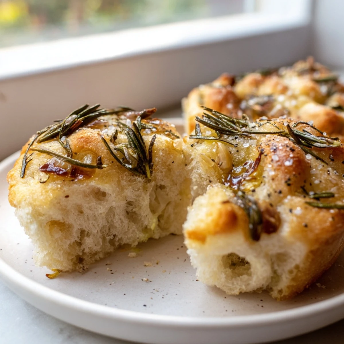 Extra virgin olive oil gets drizzled over the tops before baking, forming a golden, slightly crisp exterior that contrasts beautifully with the soft interior. Flaky sea salt adds the perfect finishing touch, enhancing the herbal and garlic notes.