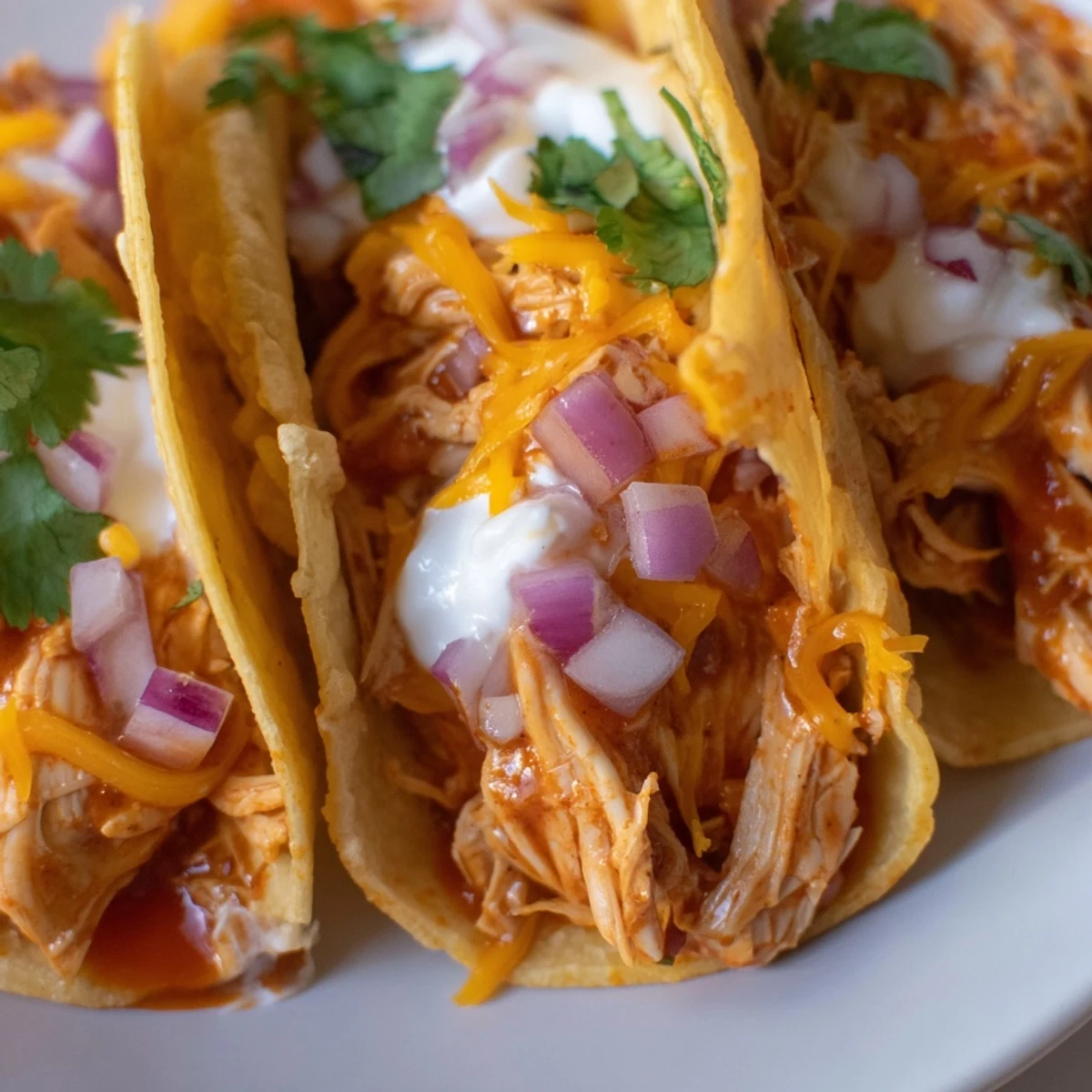 Set-it-and-forget-it Mexican-style chicken that becomes perfectly tender after hours in the slow cooker. The meat absorbs flavors from taco seasoning, smoked paprika, salsa, and lime, resulting in juicy, shred-ready filling. Pile into warm corn or flour shells and crown with crisp lettuce, melted cheese, cool sour cream, diced tomatoes, red onion, creamy avocado, and fresh cilantro. Perfect for feeding a crowd or meal prep for the week ahead.