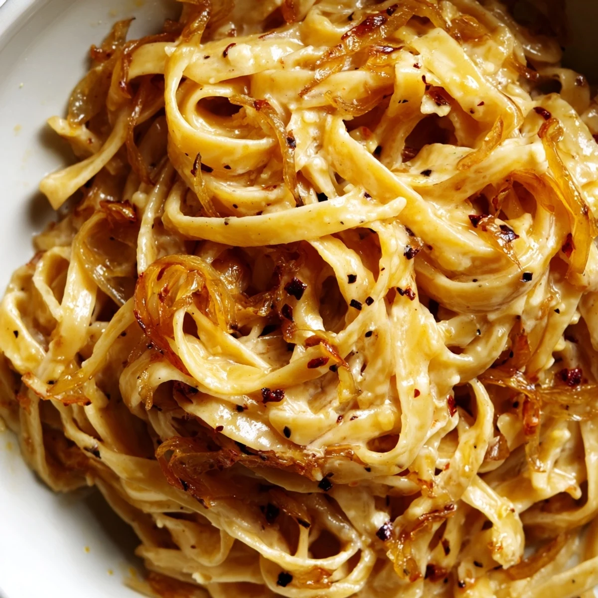 The first time I made caramelized onions, I stood over that stove for forty-five minutes, convinced I had ruined something that should have taken ten. But then that transformation happened, that sweet golden alchemy, and I understood why patience in the kitchen pays off. This pasta became my weeknight indulgence after discovering how beautifully sweet onions play against a kick of heat.